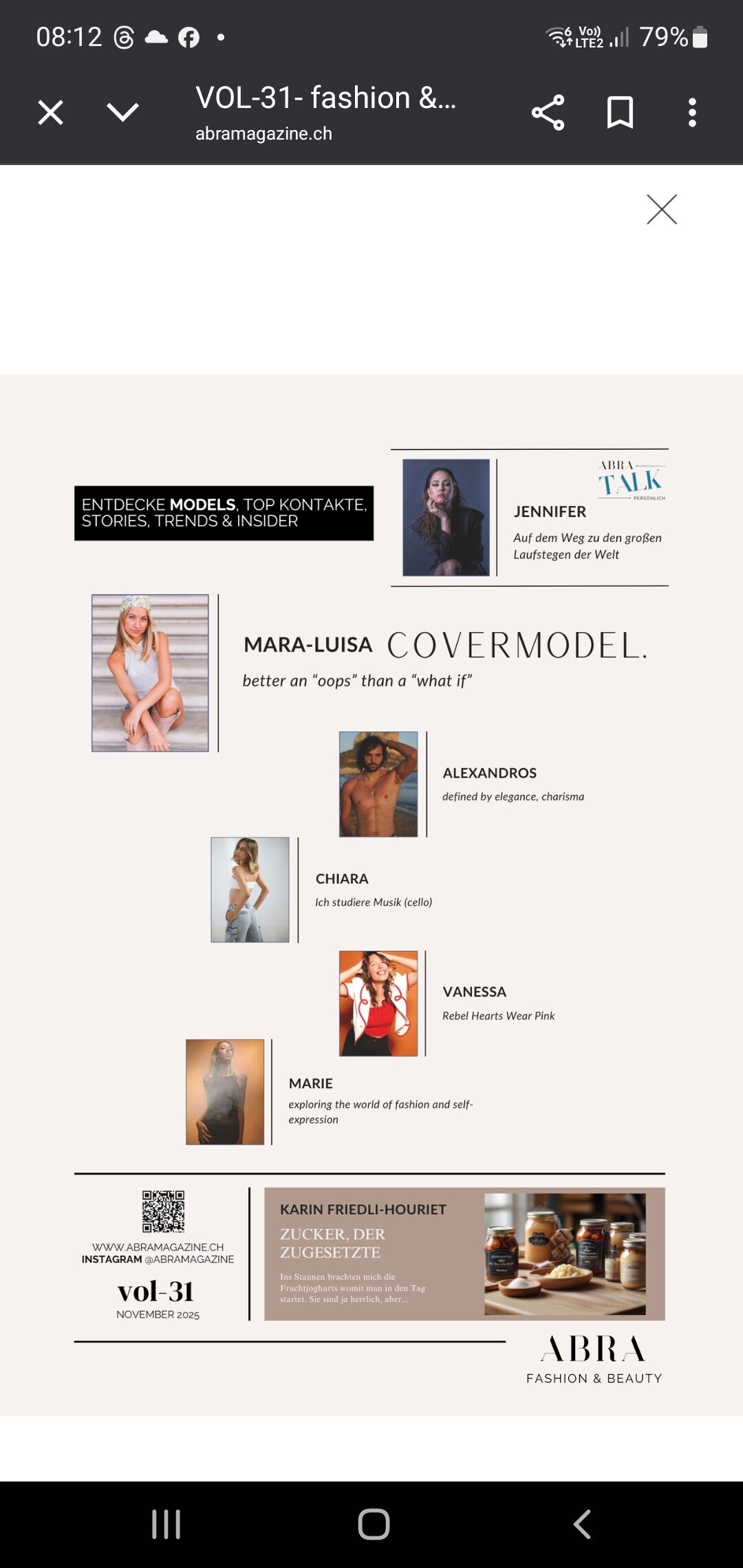 Benvenuti nel mio mondo di immagini e storie. Qui potrete esplorare le campagne pubblicitarie, gli editoriali di moda e le apparizioni sui siti che hanno segnato il mio percorso come modella. Ogni progetto è un frammento del mio impegno e della mia passione. Preparatevi a essere stupiti dalla qualità e dalla versatilità del mio lavoro.